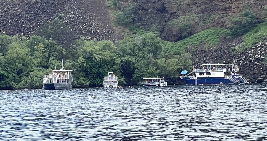 Officers unattached to the Hawai‘i Branch marine patrol unit earlier the same day sailed to Kealakekua Bay with the primary goal of watching for kayakers and other boaters interacting with spinner dolphins.