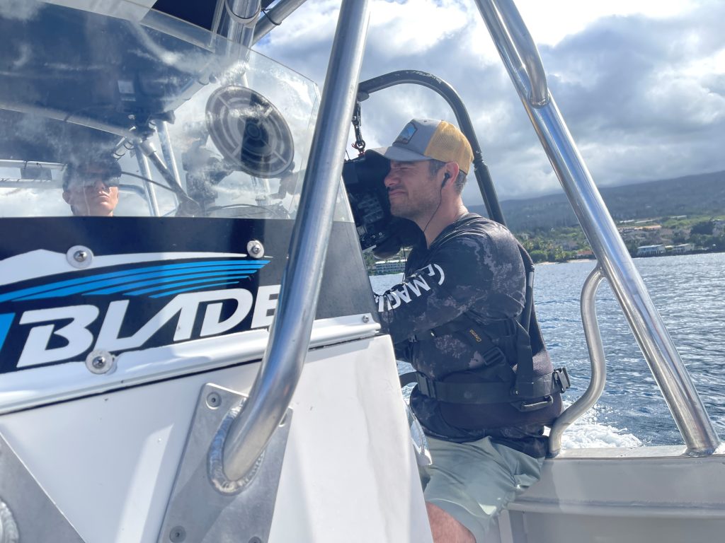 They launched a drone at Kealakekua after seeing a school of dolphins near kayaks and commercial tour boats. Focusing on one particular kayak, it appeared they might have been chasing dolphins.