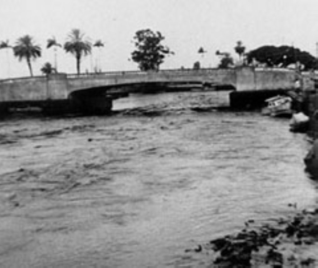 A small bridge connecting Cocoanut Island to the shore at Hilo Bay was destroyed by a wave when it was lifted off its foundation and smashed down when water swept in with a runup of 12 feet.
